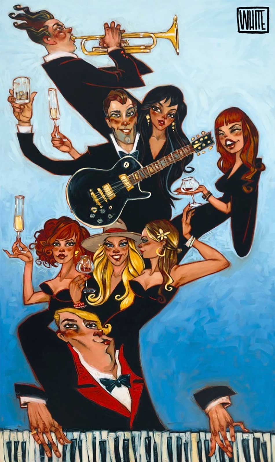 Todd White is being hailed as the hottest artist on the planet. His quirky portraits of nightlife, romance and mischief are highly collectible. Because of this he has gained international recognition. Todd’s paintings have entered the collections of stars and celebrities and corporate groups. Sylvester Stallone, Mary J. Blige and Catherine Zeta Jones, to name a few. He’s a charismatic man with style. For that reason he has become a magnet for art collectors all over the world. You’re not just buying the painting, you are buying the man. And the man is hot.