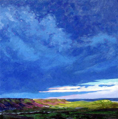 Modlinski is known for his bold and intense palette that interprets the dramatic impression of a landscape. Oil paint offers such a rich, lustrous color which is perfect for Dominik’s style. His paintings have such an opulent and energetic nature that make them larger than life.